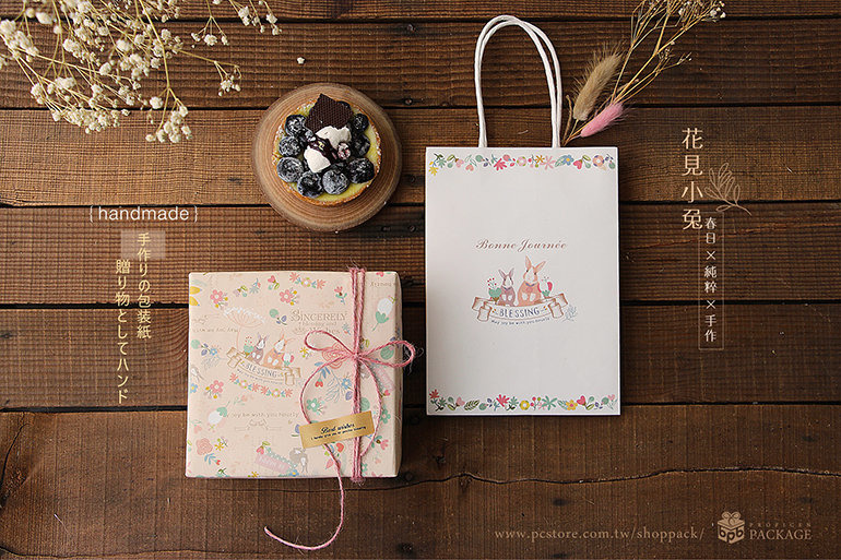 手提紙袋〔大6K-L(方)〕花見小兔 (25入)